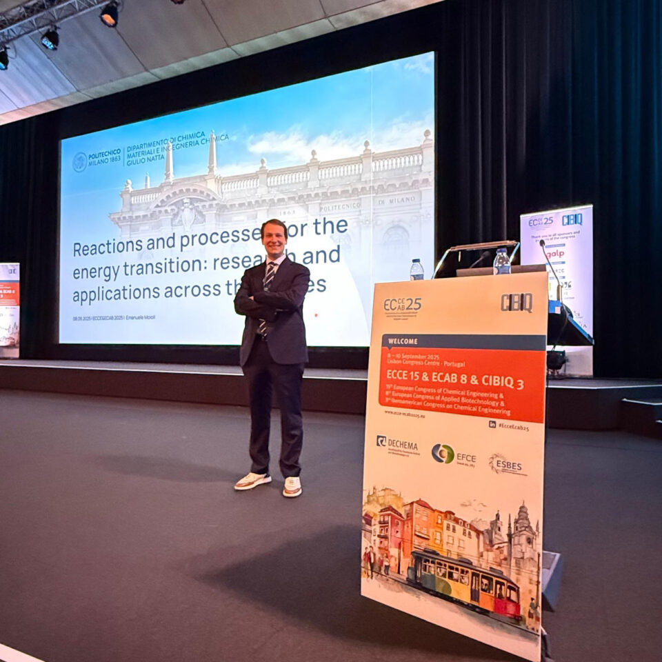 Congratulations to Prof. Emanuele Moioli, selected as Early Career Plenary Speaker at the 15th European Congress of Chemical Engineering (ECCE), organized by the European Federation of Chemical Engineering. The plenary lecture offered an overview on chemical reaction engineering options for the energy transition, showing the technologies successfully developed by the research group.