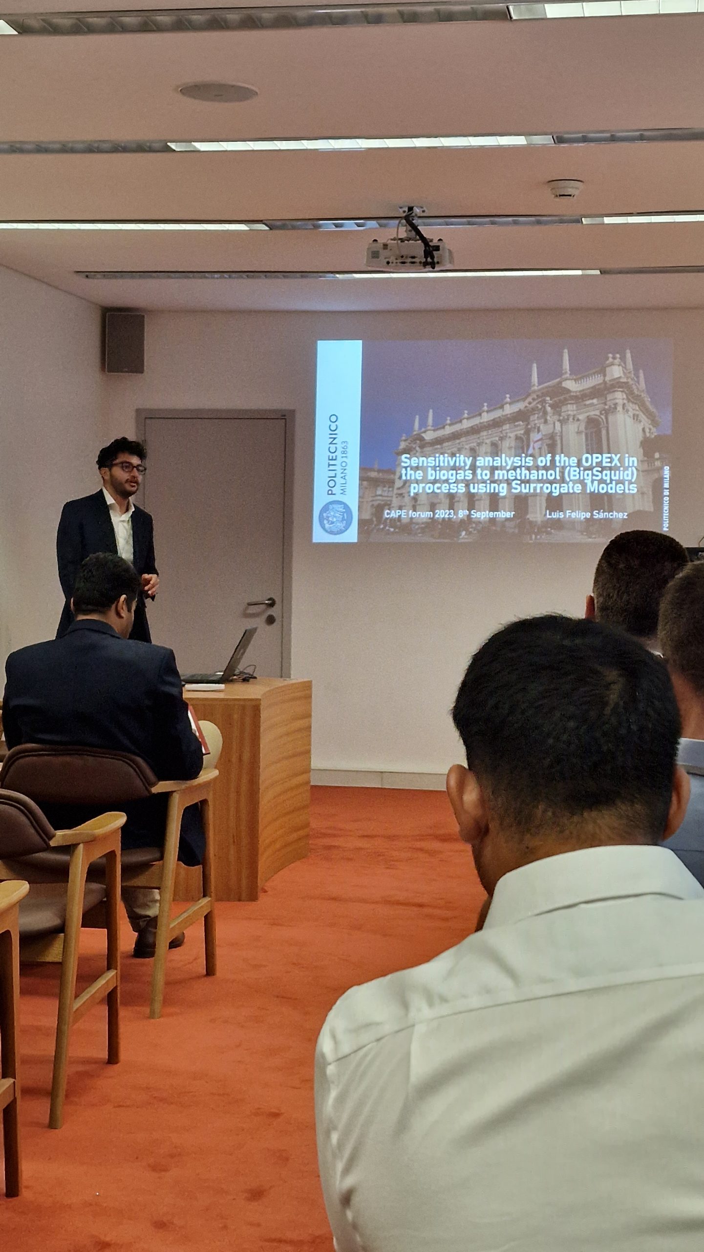 Our Ph.D. fellows Luis Felipe Sanchez Martinez and Marcello Bozzini participated in the CAPE Forum 2023 at the University of Porto – Faculty of Engineering (U.PORTO-FEUP, Portugal) from September 6th to 8th, 2023. They discussed the role of CAPE tools in accelerating the rapid changes taking place in the Process Industry.
